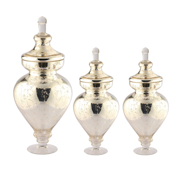 A40021 D4.5"H9"/12.5"/14" - SET OF 3 GLASS APOTHECARY JARS WITH LID