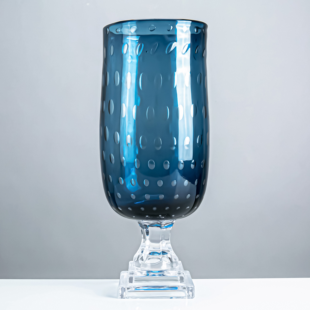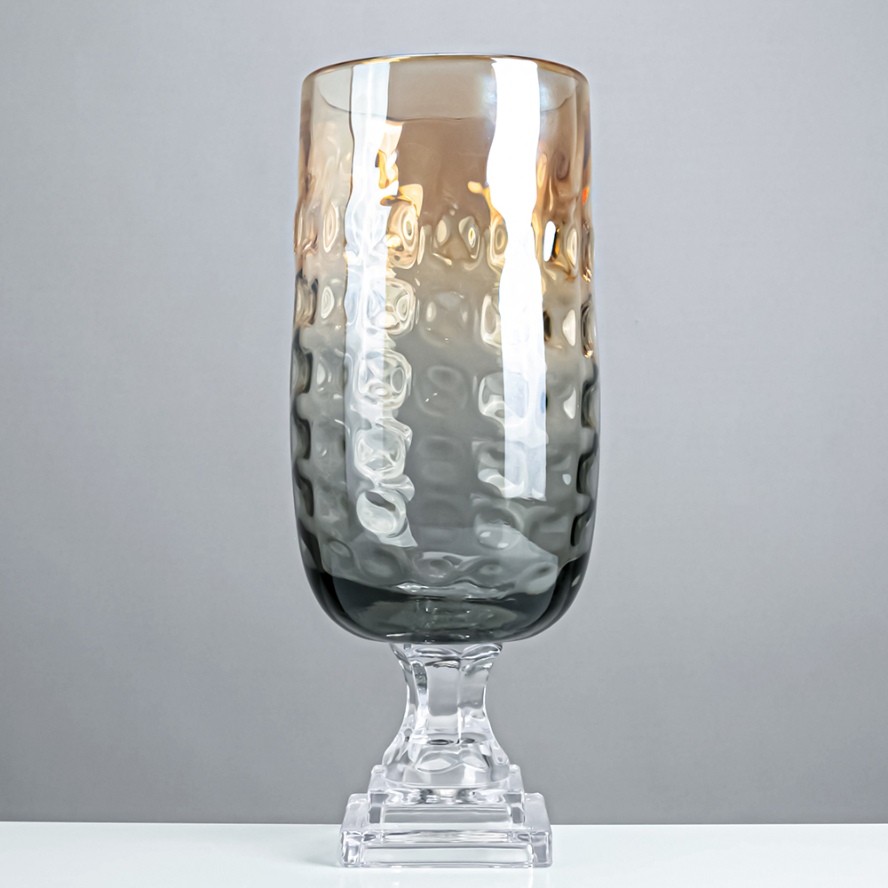 49653 D7.1"H12.6" - GLASS VASE ON PEDESTAL