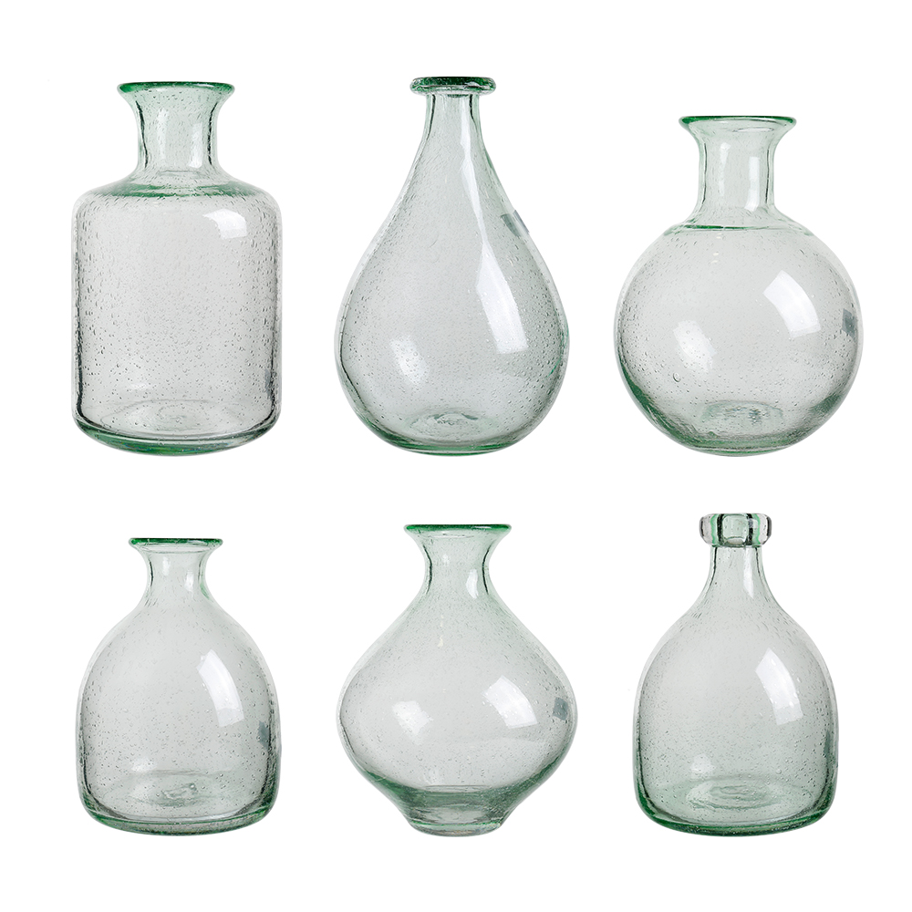 49715asst D6"/6.7"/7"H9" - ASSORTED GLASS VASES
