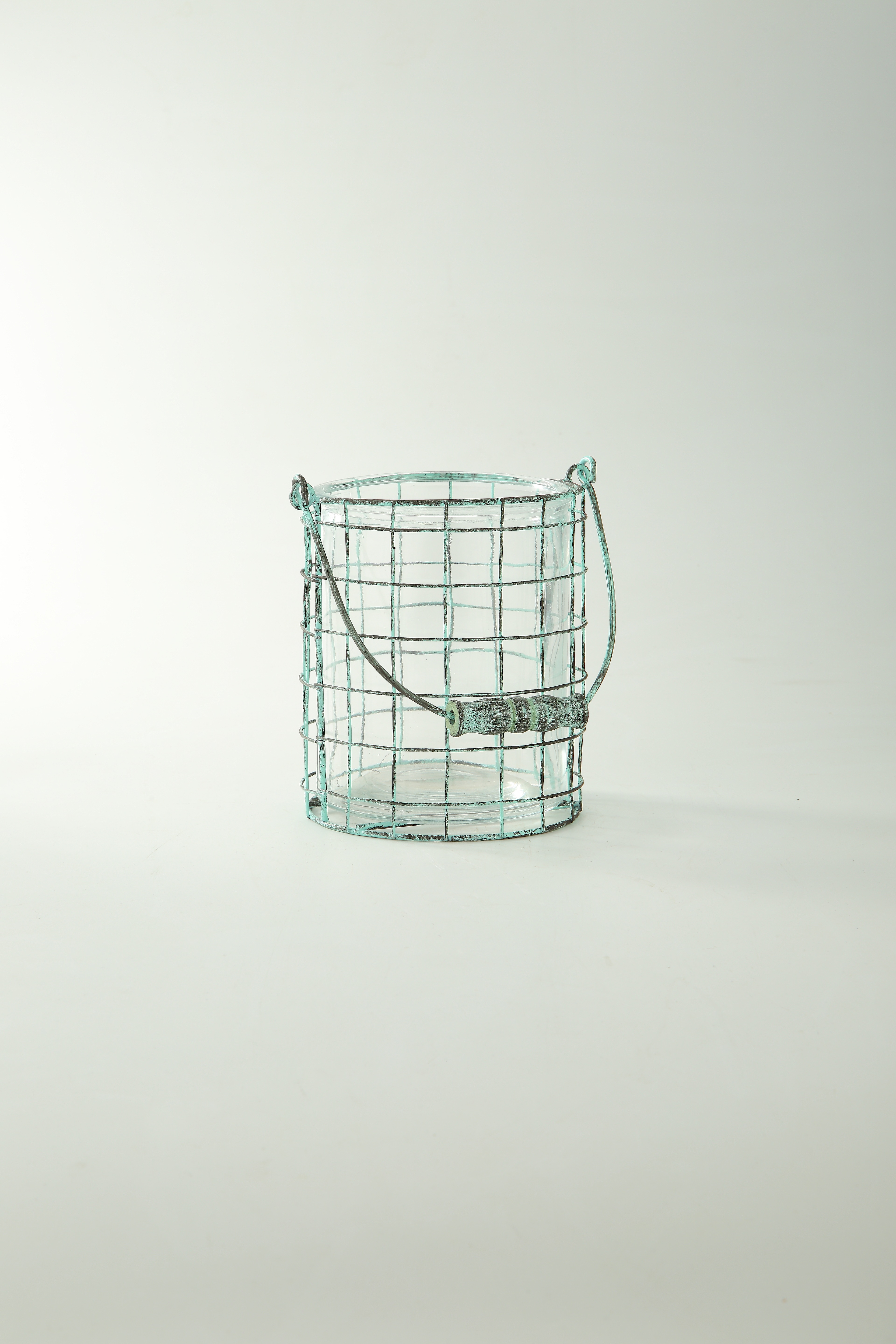 94246-WH D6"H8.5" - GLASS CYLINDER WITH METAL HOLDER
