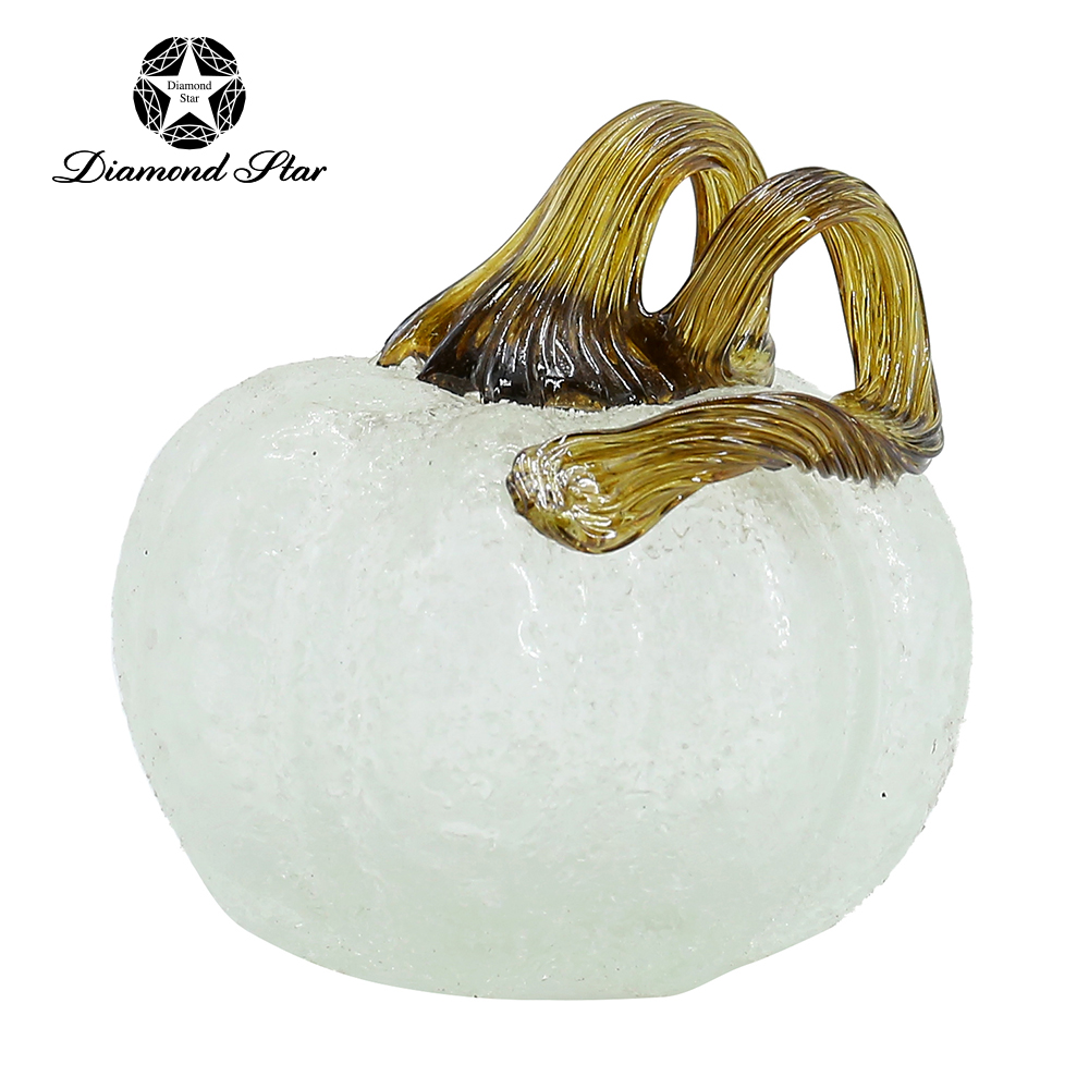 79514 L5.9"W5.9"H9.1" - CRACKLE GLASS PUMPKIN WITH CURLY STEM