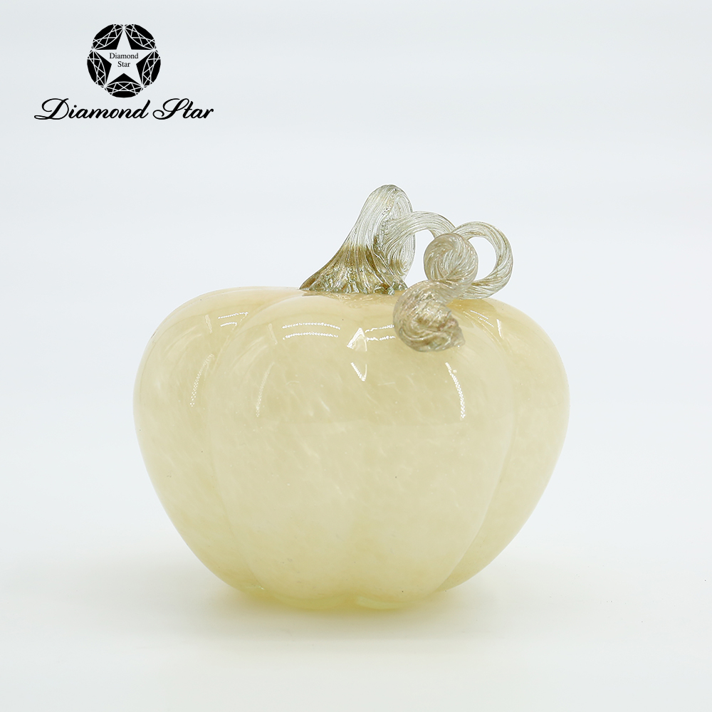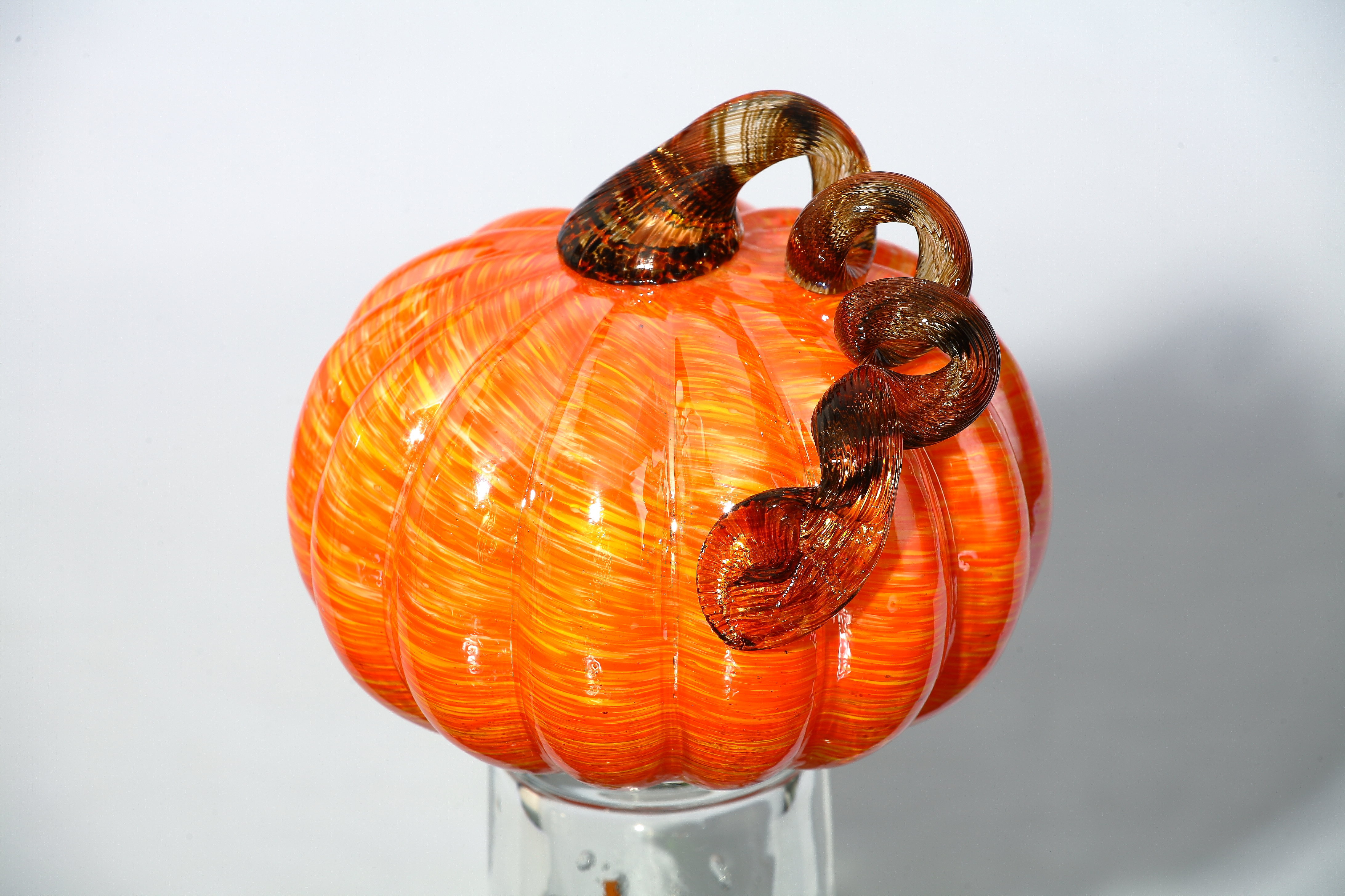 87138 D7.5"H7.5" - GLASS PUMPKIN WITH CURLY STEM
