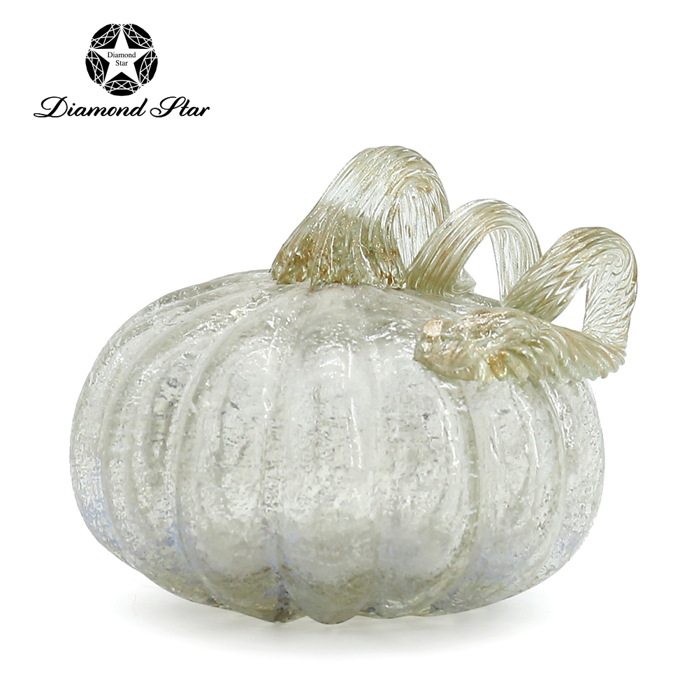 79512 *L8.7"W8.7"H6.3" - GLASS PUMPKIN WITH CURLY STEM