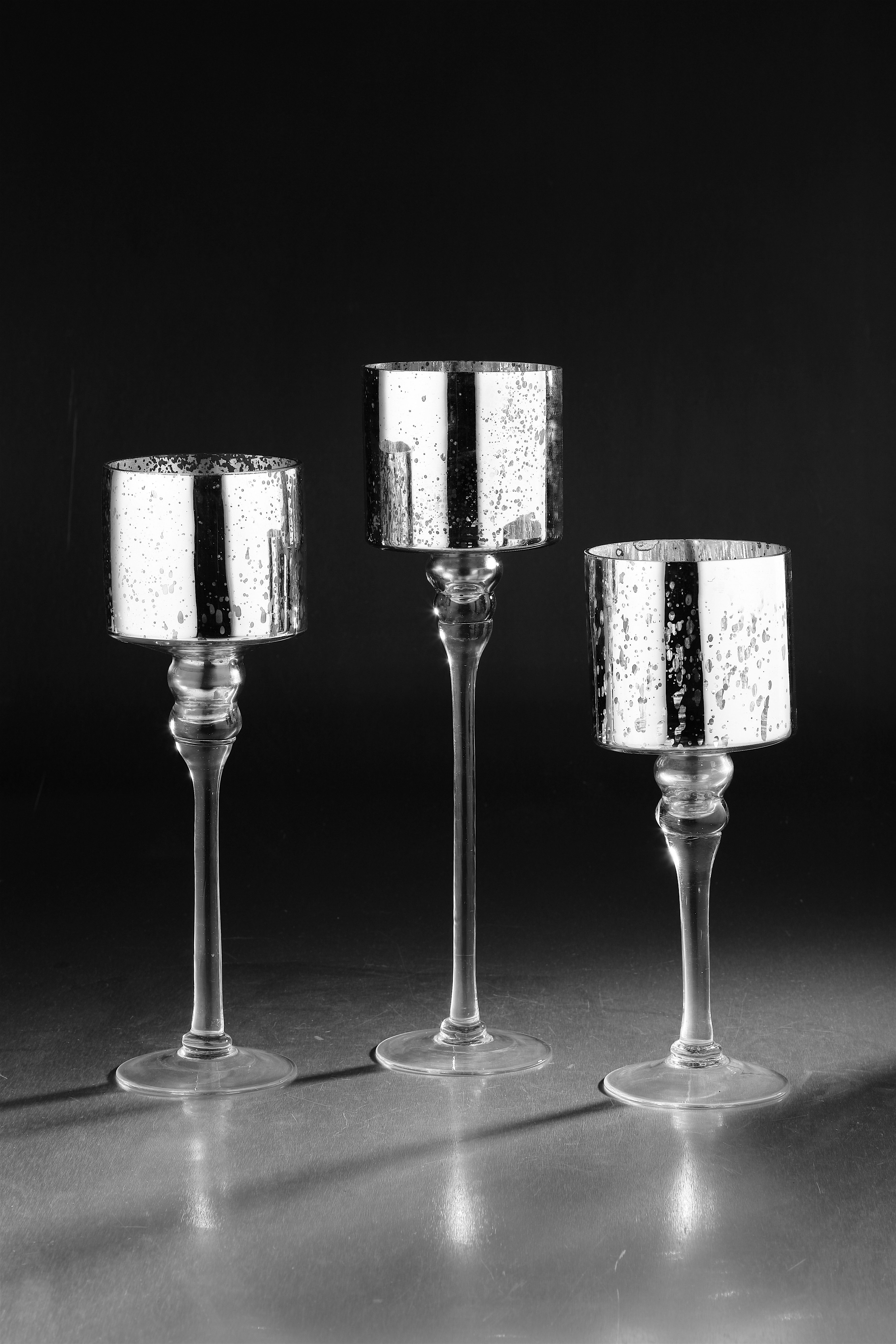 40253 D4.5H12/14/15.5" - SET OF 3 MERCURY GLASS CANDLE HOLDERS