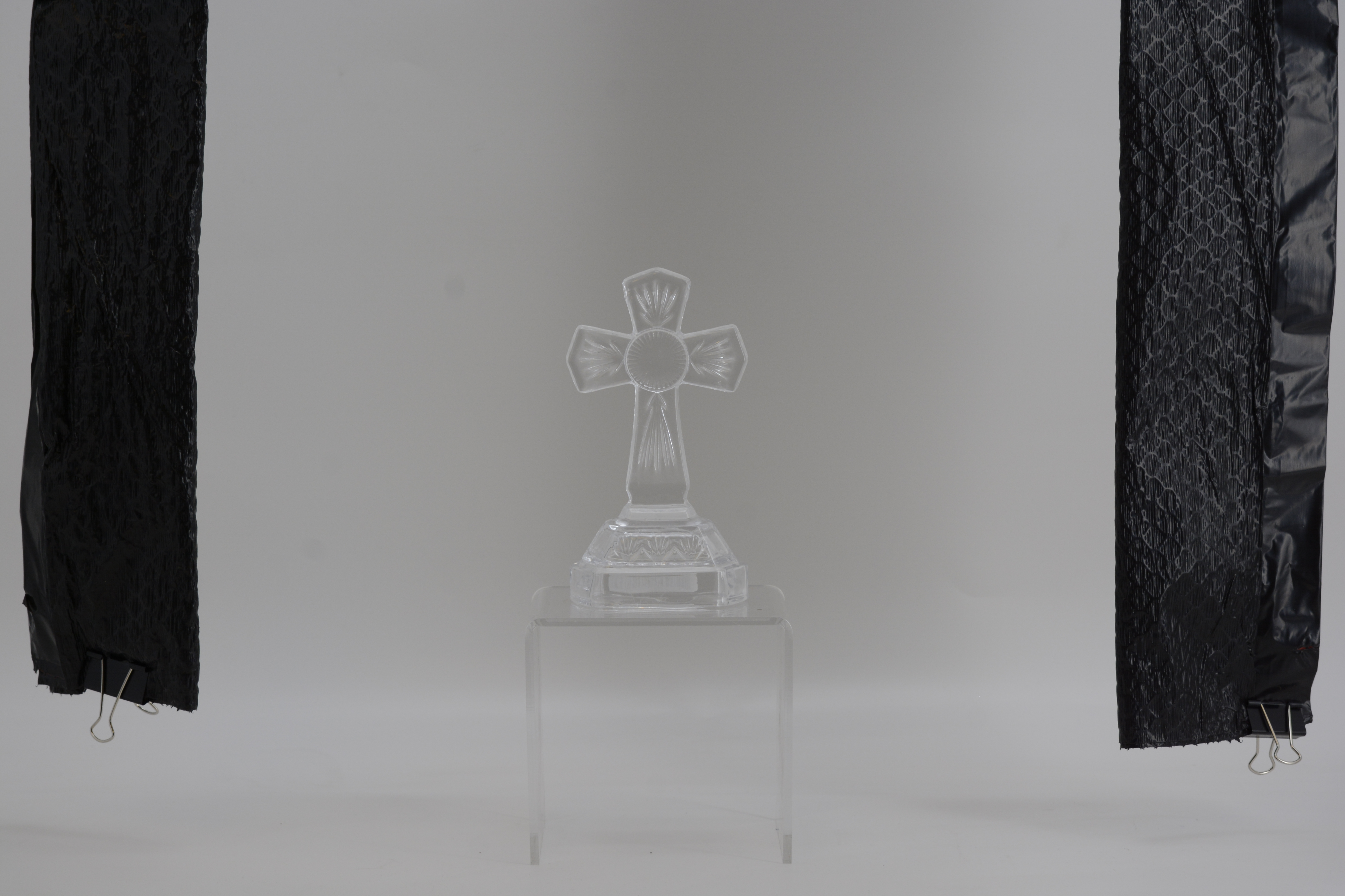 68118 L3.5"W2.5"H7" - GLASS CROSS TABLETOP Decor