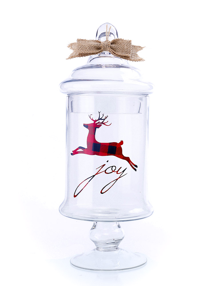 53007 *D6.5"H15" - CHRISTMAS REINDEER APOTHECARY JAR WITH LID