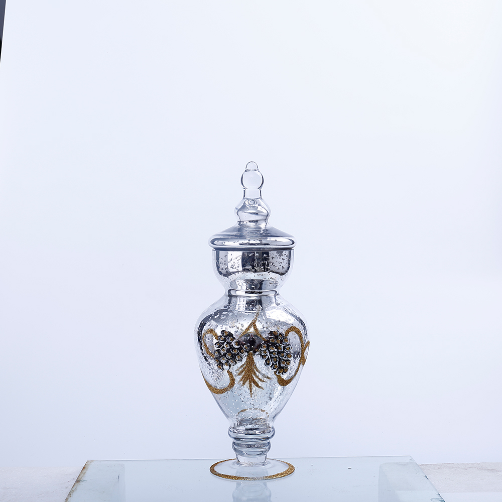 54041 D6.1"H15" - GLASS JAR WITH PINECONE DESIGN
