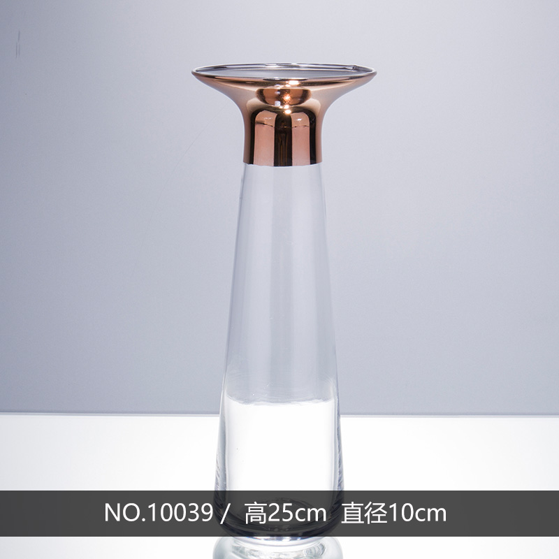 10039 D3.9"H9.8" - GLASS VASE WITH COPPER STRIPE