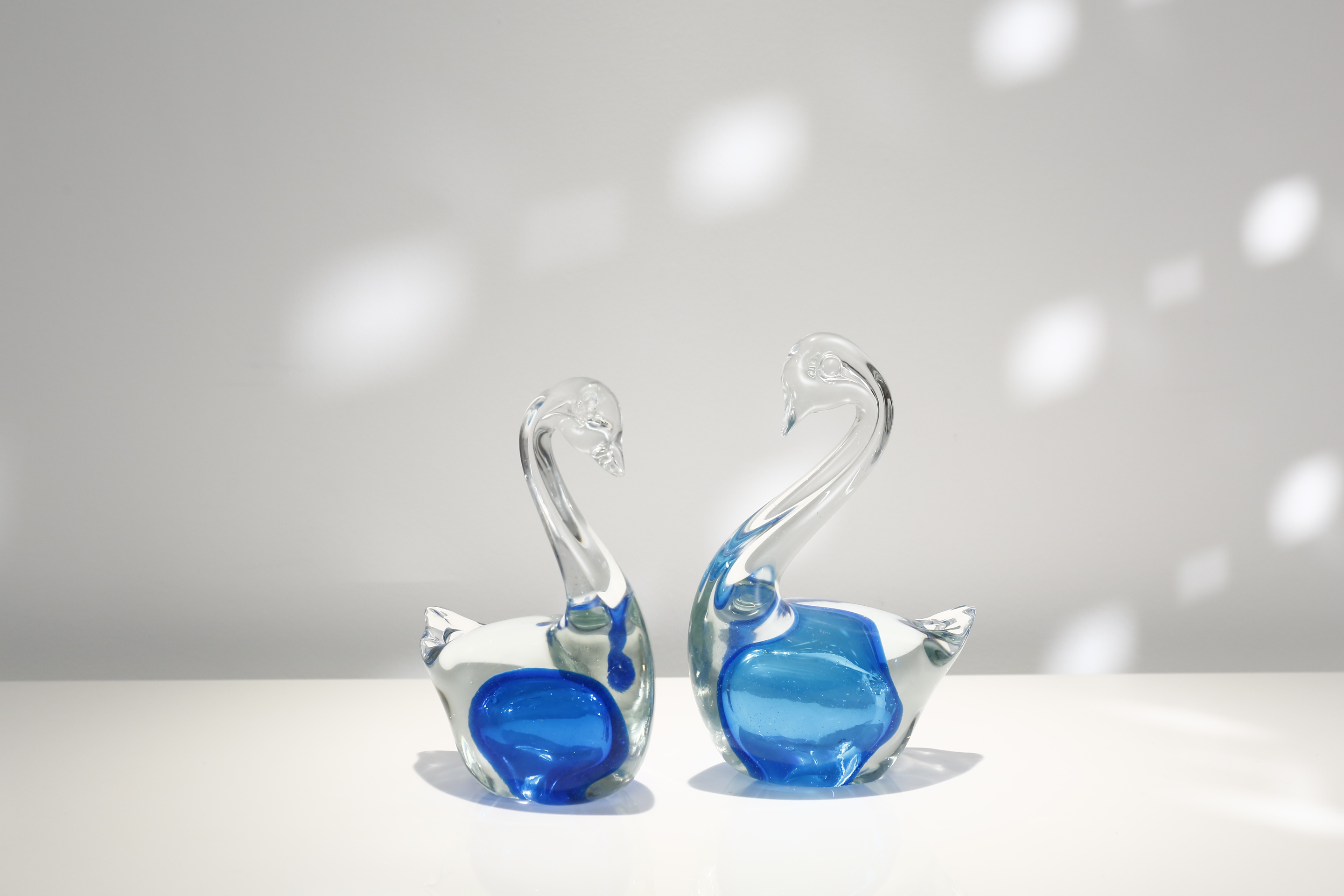 22033 L4.7"W2.8"H5.9" - SET OF 2 GLASS SWAN FIGURINES