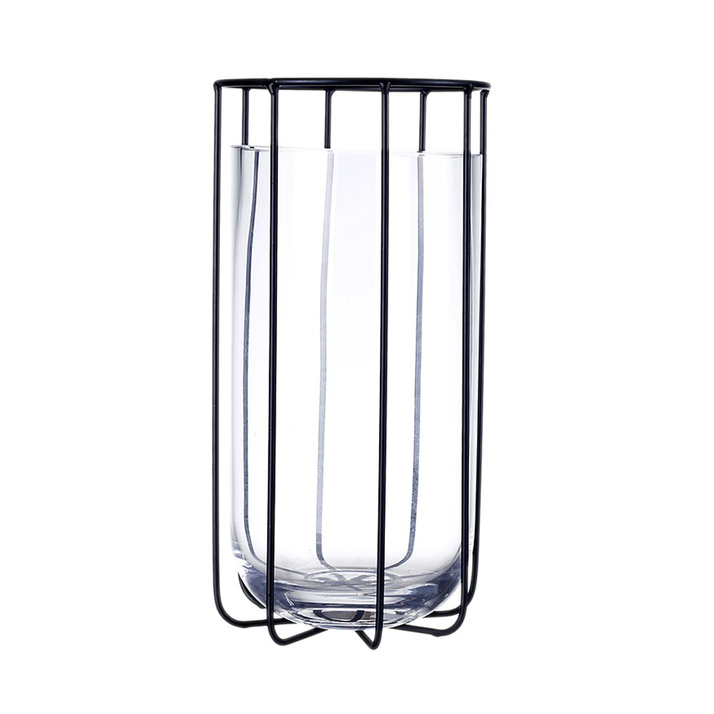 45209 D4.5"H9.5" - GLASS VASE IN A METAL HOLDER