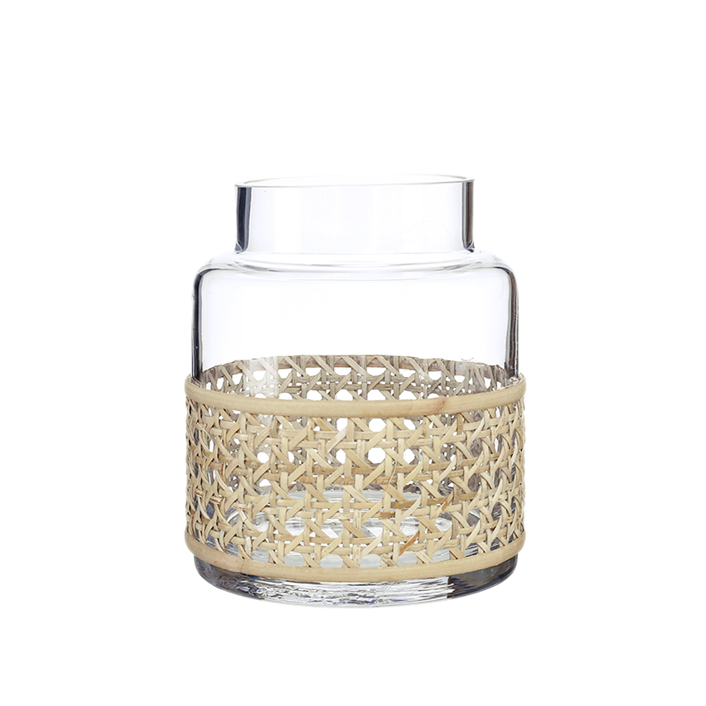 45306 D5"H5.9" - GLASS VASE WITH RATTAN WRAP