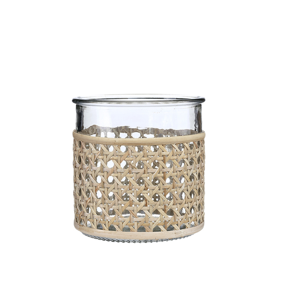 45335 D4.7"H4.7" - GLASS VASE WITH RATTAN WRAP