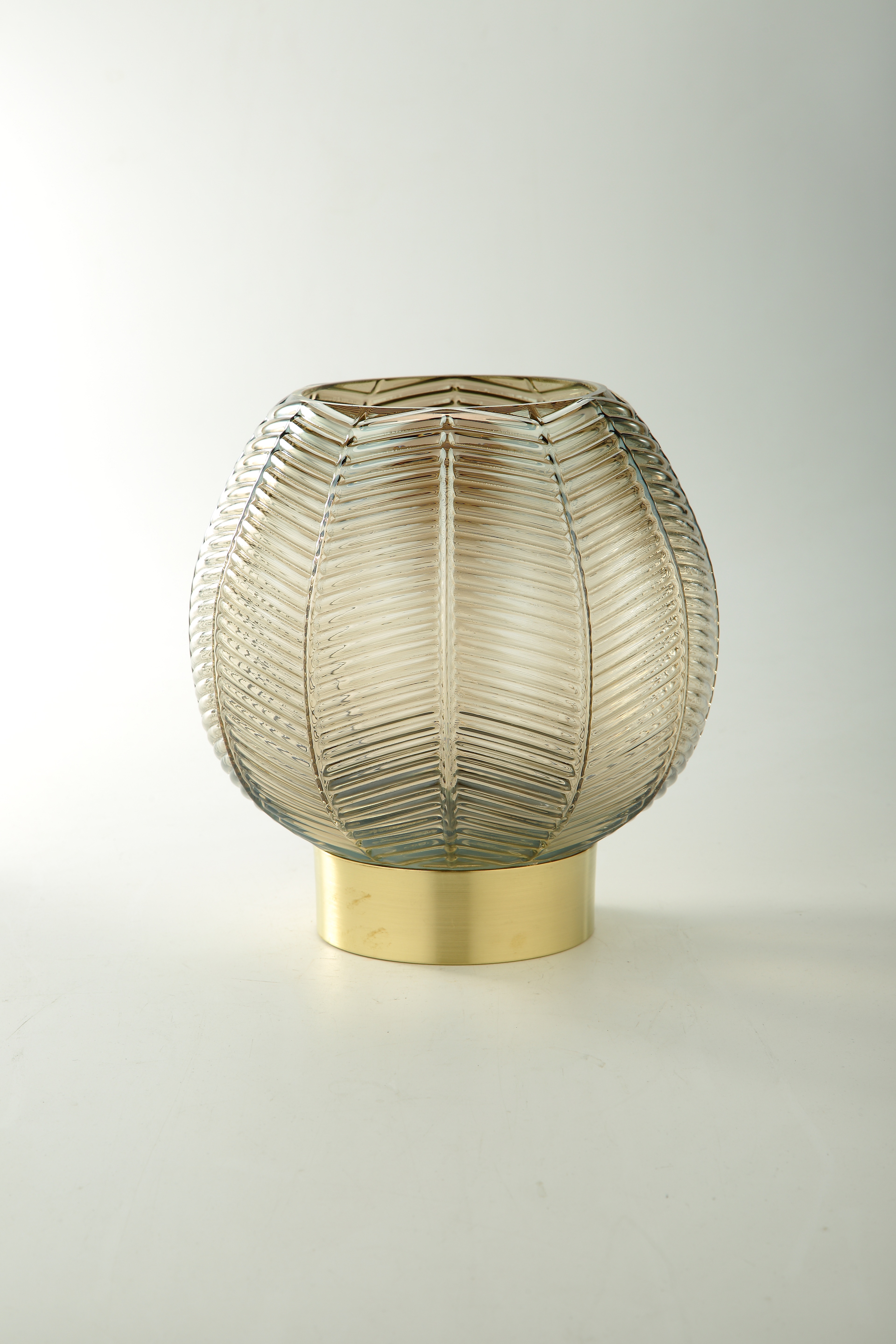 46575 D8.5"H9.5" - GLASS VASE WITH METAL BASE