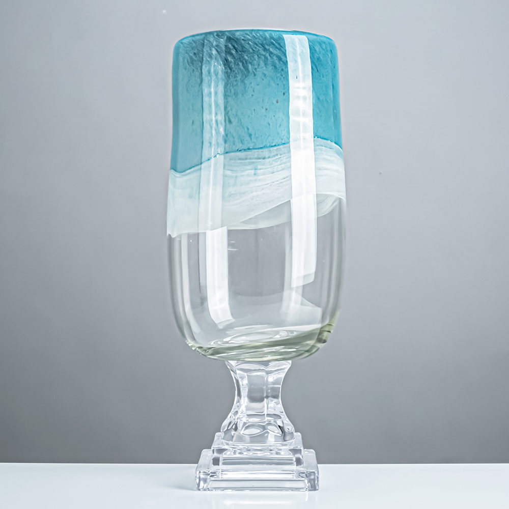 49645 D7.1"H12.6" - GLASS VASE ON PEDESTAL