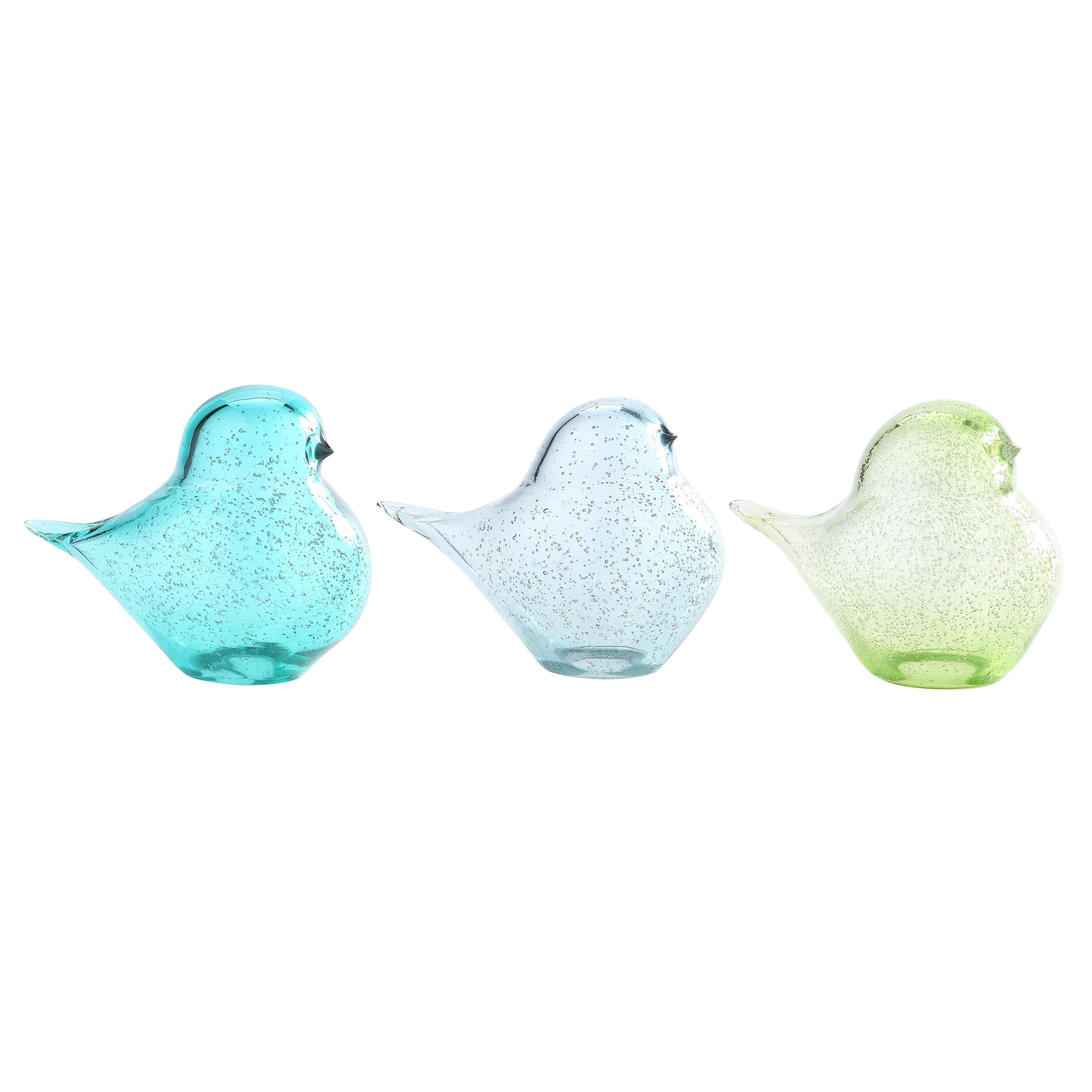55827ASST L10"W6"H7.5" - ASSORTED COLORS GLASS BIRD FIGURINES