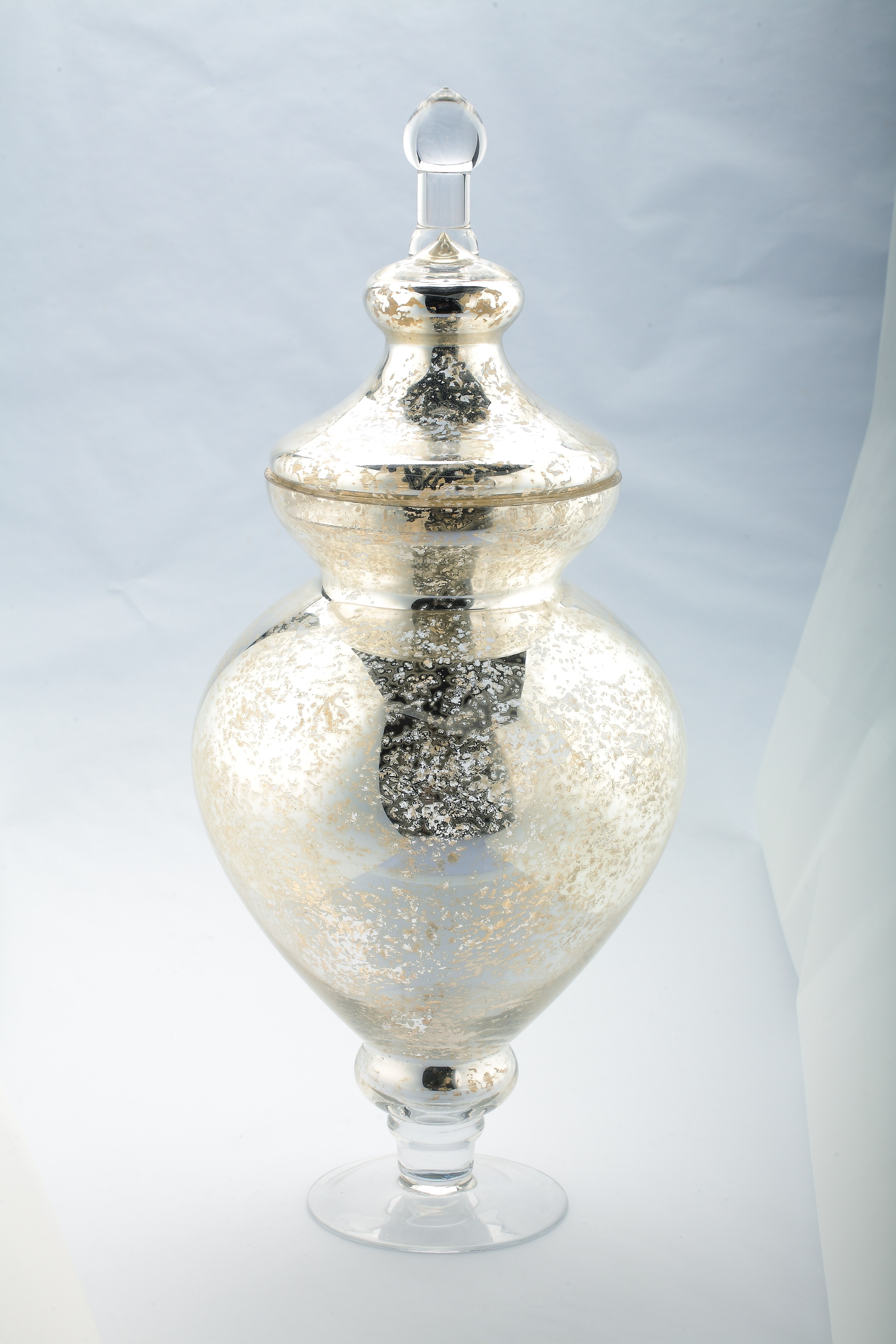 69074S *D9"H21" - MERCURY GLASS APOTHECARY JAR WITH LID