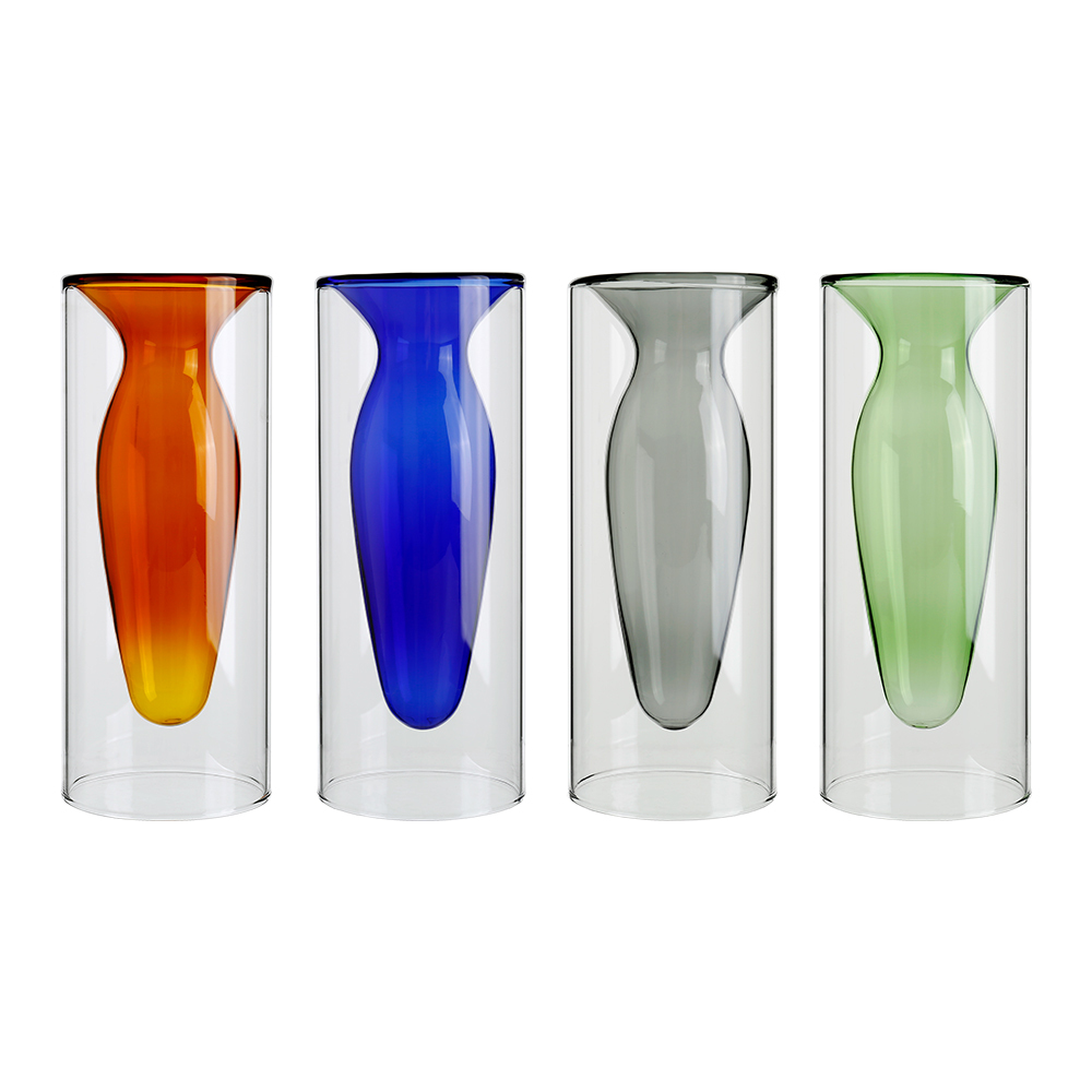 69405ASST D3"H7.9" - ASSORTED COLORS DOUBLE-LAYERED GLASS VASE