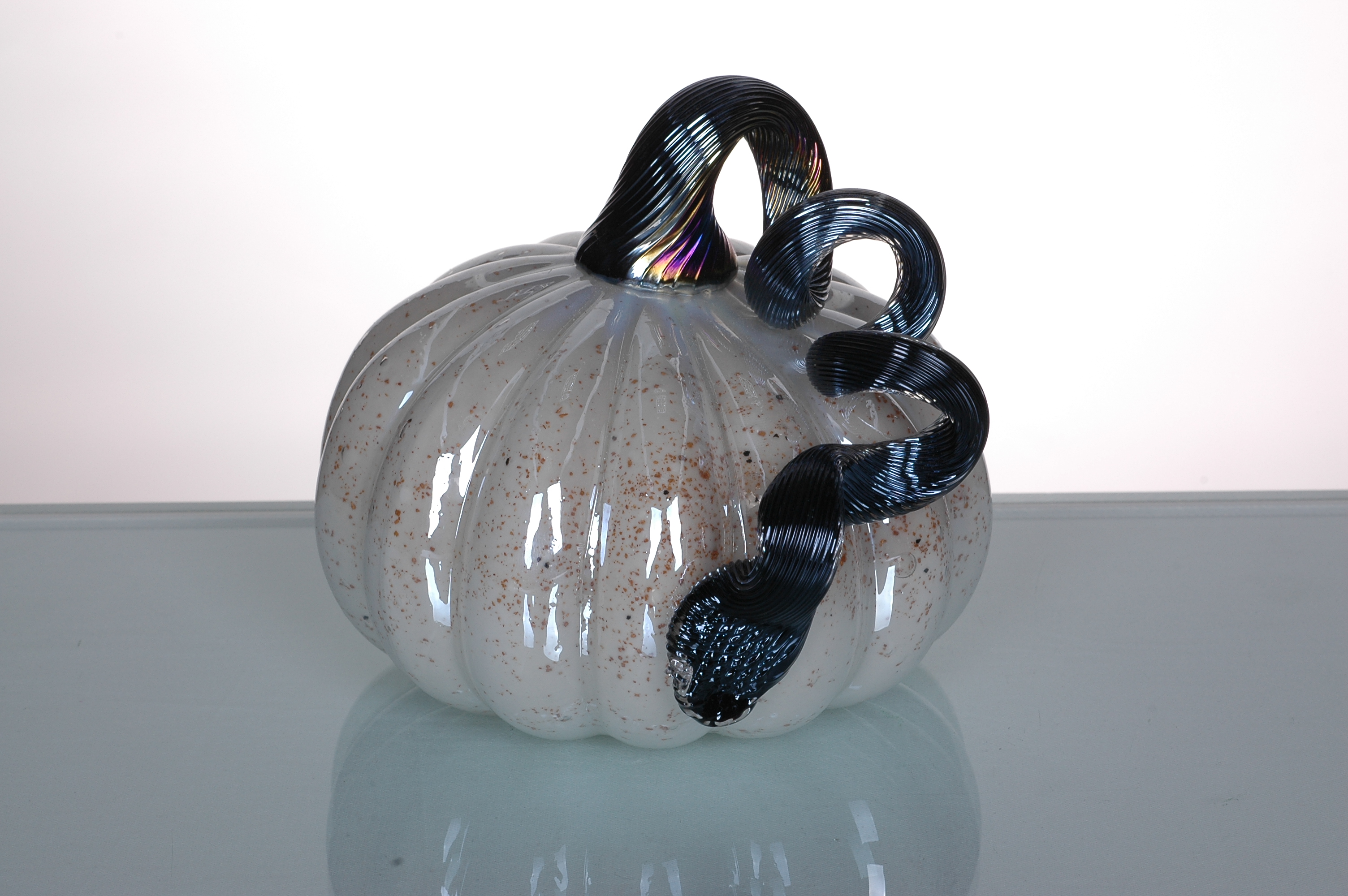 87161W D5.5"H5.5" - GLASS PUMPKIN WITH CURLY STEM