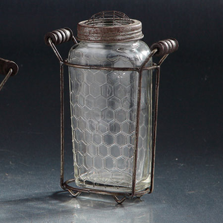 94014 L5.5"W3"H7" - GLASS JAR WITH METAL HOLDER