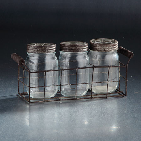 94019 L12"W3.5"H5.5" - GLASS JAR TRIO WITH METAL HOLDER