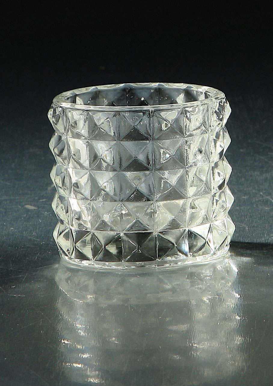 94249 D3"H2.5" - DIAMOND PATTERN TEXTURED GLASS CANDLE HOLDER