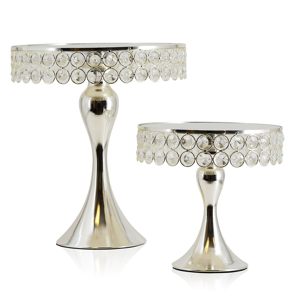 M20002S D7.87"D9.84" - SET OF 2 CRYSTAL CAKE STAND WITH MIRROR