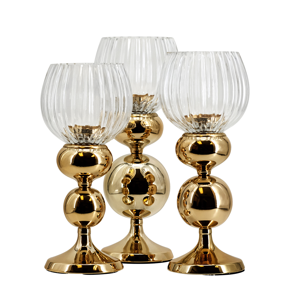M20018 D5.1"H11.4/12.2" - SET OF 3 METAL GLASS CANDLE HOLDERS
