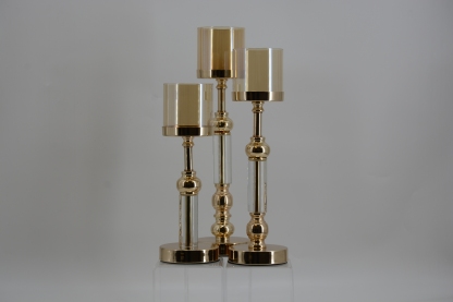 M20022GD D4.7H13/15.7" - SET OF 3 METAL GLASS CANDLE HOLDERS
